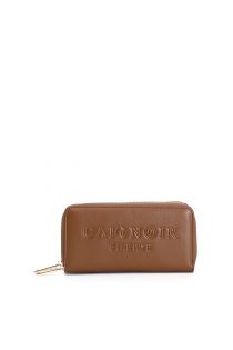 embossed logo zip around wallet brown