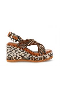 Fabric crossover sandals with a 9.5 cm wrapped wedge. braided strap and comfortable insole. ideal summer footwear with a boho-chic vibe and maximum stability for a fresh trendy look.