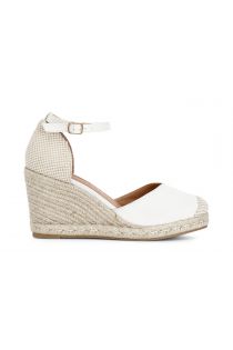 Fabric ankle strap sandals on cord wedge h. 105mm.
