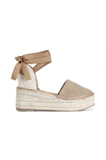 fabric sandals with gladiator lacing on cord wedge tobacco
