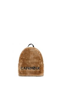 Medium-sized faux fur backpack with contrasting embroidered logo