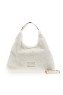 faux fur bag with shoulder strap and logo white