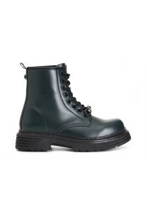 Women's lace-up ankle boot in leatherette with brushed effect. the accessory positioned at the base of the lacing contributes to the shoe's bold style.