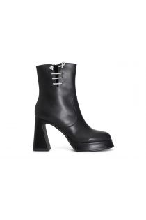 Women's ankle boot in leatherette with rhinestone lace. footwear in perfect seventies style. the 95mm high heel together with the 18mm platform provide a balance of height beauty and comfort.