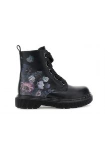 Lace-up ankle boots in faux leather with a floral print and fabric lining. The 4 cm high sole adds a bold touch to the romantic look, perfect for a feminine urban style.
