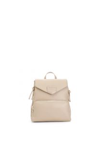 faux leather backpack with round zip pocket, side pockets with zip hazelnut