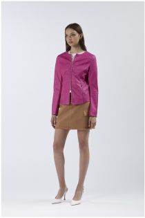 Crew-neck jacket made of faux leather with an aged effect. central zipper. basic line that lends elegance and simplicity.