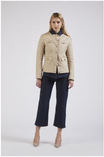 Padded long-sleeved leatherette jacket with precious logo buttons.