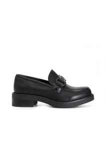 Women's loafer embellished with a rhinestone accessory on the loop. the insole is leather.