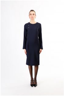 Crew-neck sheath dress and faux wallet motif with personalized finishing detail. the garment has long sleeves and is made of bi-stretch fabric. rear concealed zip closure. simple and versatile dress perfect for the office feminine and at the same time practical to always keep in your wardrobe.