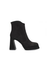 Women's ankle boot in microfibre with a zip at the back make them easier to put on. footwear in perfect seventies style. the 95mm high heel together with the 18mm platform provide a balance of height beauty and comfort.