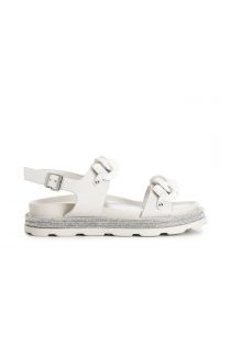 Fisherman sandals with double chain in colour block effect. comfortable fussbett and lateral rhinestone insert on the sole. 40mm-high heel.