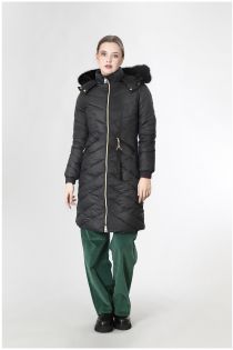 Fitted down jacket with a hood finished with a detachable faux fur trim.