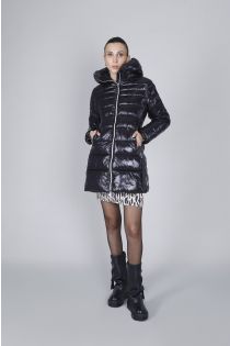 fitted down jacket with fixed hood black