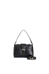 Elegant bag with flap decorated with threading motif and buckle metal logo magnetic closure and removable shoulder strap for a versatile and sophisticated style