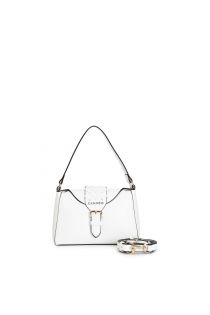 Elegant bag with flap decorated with threading motif and buckle metal logo magnetic closure and removable shoulder strap for a versatile and sophisticated style