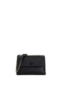 Shoulder bag with flap. all-over embossed logo and tone-on-tone accessory. cross-body bag with chain. braided zip puller with charm.