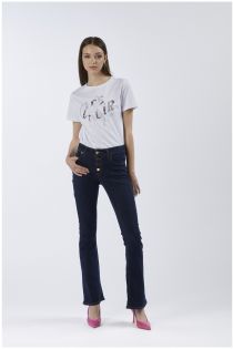 flare denim jeans with button fly indaco