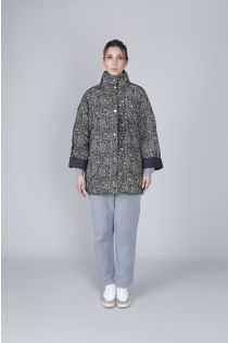 Cape-style nylon down jacket with a contrasting flock print and a flared silhouette. Perfect for a casual and sophisticated look. Regular fit for comfort and style on any occasion. Regular fit. The model is 173 cm tall and wears a size S.