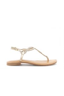 flat leather flip-flop sandals with braided embroidery gold