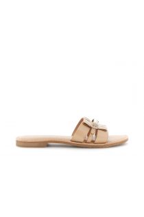 flat leather slide sandals with jewel buckle nude