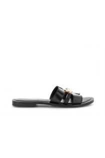 Flat leather slipper with a wide band and h motif embellished with a jeweled appliqué. a padded leather insole for everyday comfort and a flexible 1.4 cm outsole make it ideal for refined and versatile summer looks.
