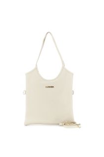 flat shoulder shopping bag in hammered leather with removable shoulder strap cream