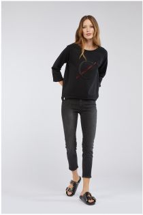Loose sweatshirt with raglan sleeves. A pattern of raw cut finishes and gentle asymmetries make it sporty but sophisticated at the same time. The garment is enriched with our logo embroidered on the front