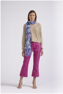 Scarf with floral design print in shades of purple. size 75x180 cm. composition: 80% polyester 20% viscose