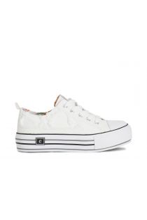 Fabric sneakers with fringed insert. rubber toe. lace closure. 4 cm cassette sole with colored details. footwear that can be easily combined with all looks.