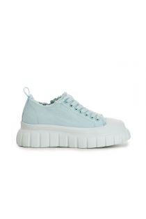 Lace-up sneakers with fringed fabric raised sole decorated with a striped pattern. model distinguished by a rubber toe cap that decorates the shoe.