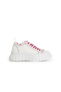 frayed fabric sneakers with contrast stitching white/fuchsia
