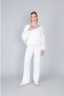 V-neck sweater with a fringed front made from a warm viscose blend. Perfect for a casual and comfortable look, regular fit. The model is 174 cm tall and wears a size S.
