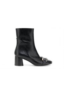 Women's faux leather ankle boots with a gold-tone front clip. Comfortable fit and a 6 cm block heel. Elegance and comfort for any occasion.