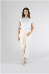 Audrey model trousers with a slim fit. made of stretch cotton fabric. the zip and button closure offers a perfect fit for any occasion.