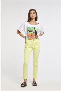 garment-dyed slim trousers in elasticated cotton fabric lime