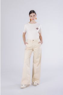 Wide-leg trousers in stretch cotton with a loose and comfortable fit. versatile style with a regular waist and wide leg ideal for casual-chic looks. perfect for everyday and seasonal outfits. the model is 171 cm tall and wears a size s. fit: regular.