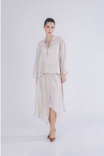 Long-sleeved blouse with gathered hem and a v-neckline with collar. relaxed fit and feminine lines perfect for elegant and everyday looks. ideal for pairing with trousers or skirts. the model is 175 cm tall and wears a size s. fit: relaxed.