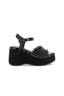 Gilda leather sandals with braided straps and a covered wedge. leather lining and insole for superior comfort. a 9 cm heel and 4.5 cm platform make them ideal for modern and chic summer looks.