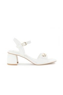 Gilda-style leather-look sandals with a gold-tone accessory adjustable strap and leather insole. the comfortable and versatile 6 cm block heel is ideal for adding a chic touch to summer looks and enhancing any outfit with style.