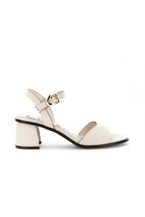 Gilda-style leather-look sandals with a gold buckle a simple strap and a leather insole for everyday comfort. a stable and feminine 6 cm block heel. the ideal shoe to complete any summer look with style.