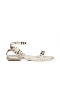 Gilda model sandals in leather with multicolor studs. the particular shape of the heel makes the shoe super chic and super glamorous. the lining and insole are in leather. high heel h. 2 cm. comfortable to wear and easy to match.