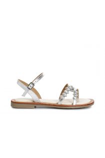 gilda sandals in laminated leather with rhinestone accessory silver