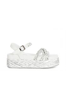gilda sandals with three raffia and rhinestone straps white