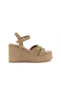Gilda suede sandals with a 9 cm wedge embellished with studs and cabochons. the leather insole and comfortable design create a bold and sophisticated style ideal for trendy summer looks.