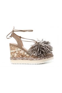 Gladiator sandals with bow in frayed raffia on multi-material platform.