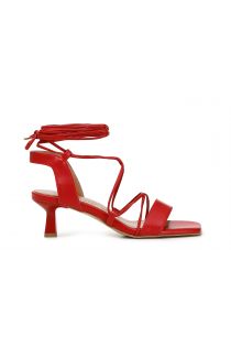 Sandals with square toe and 50 heel, gladiator lacing, leather insole and lining.