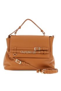 Grained faux leather flap bag with strap and buckle details and Café Noir lettering. Internal zip compartment and removable shoulder strap.