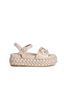 Guild model sandals with golden horsebit. comfortable fussbett and braid-covered bottom. the wedge is 6 cm high. shoe with a comfortable fit comfortable even after several hours of use.