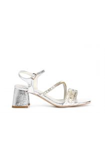Asymmetrical guild model sandals with decorated rhinestones. the padded insole in real leather makes the shoe comfortable even after several hours of use. the heel is 6 cm.